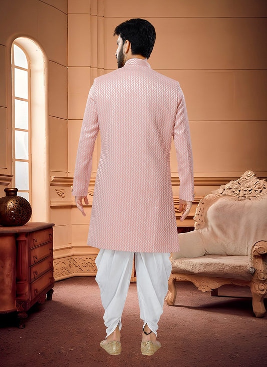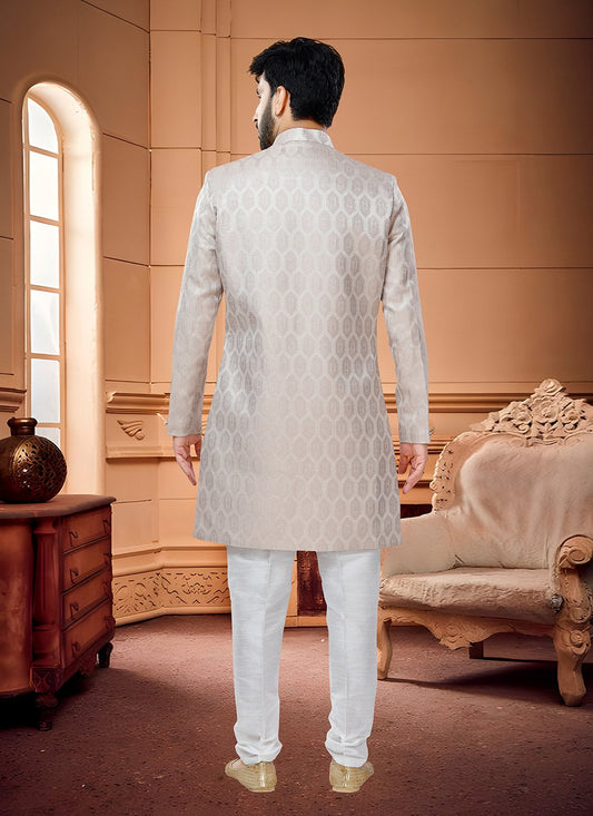 Indo Western Sherwani Jacquard Maroon Embroidered