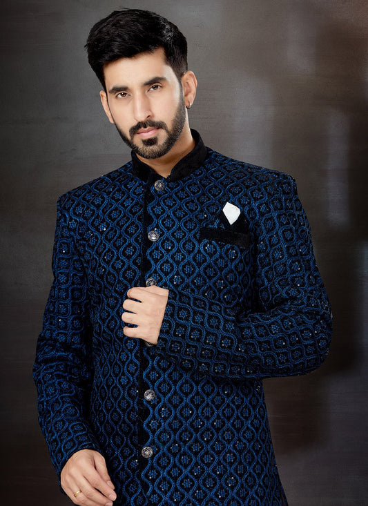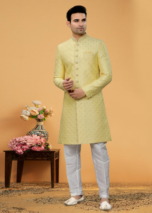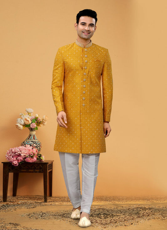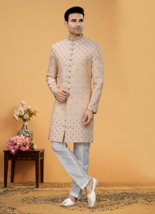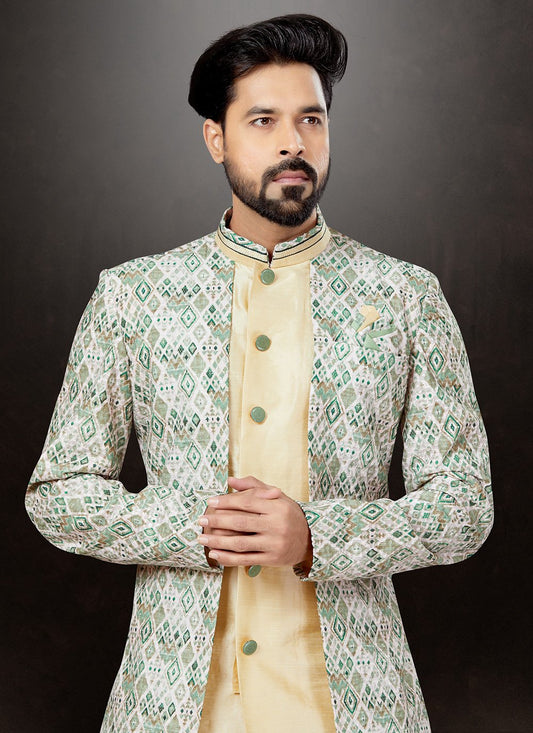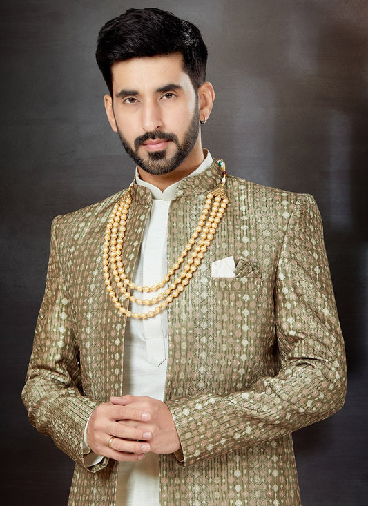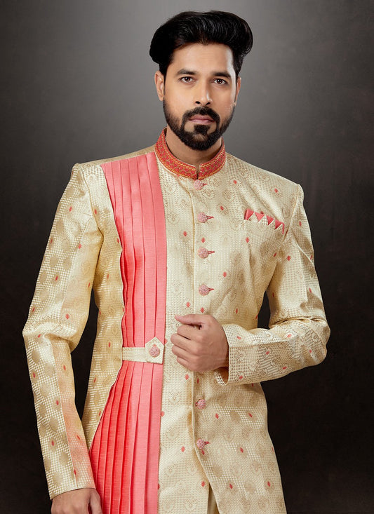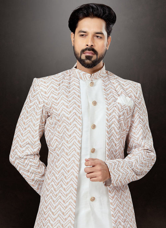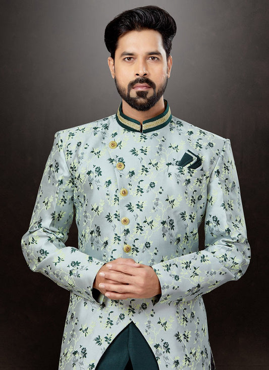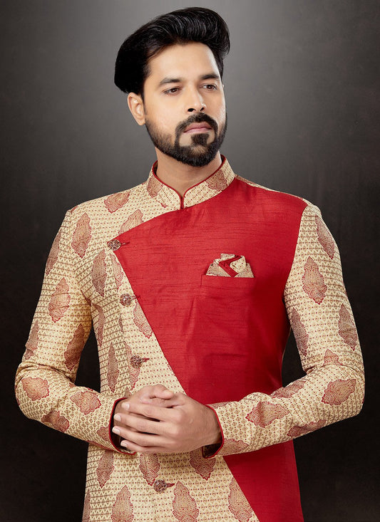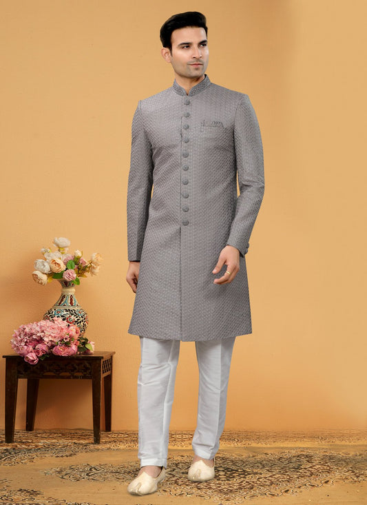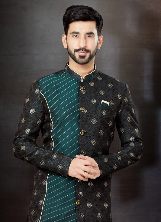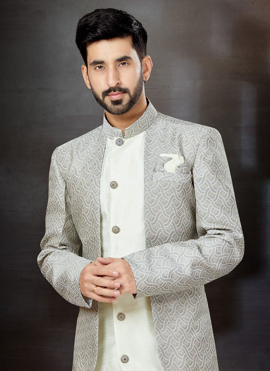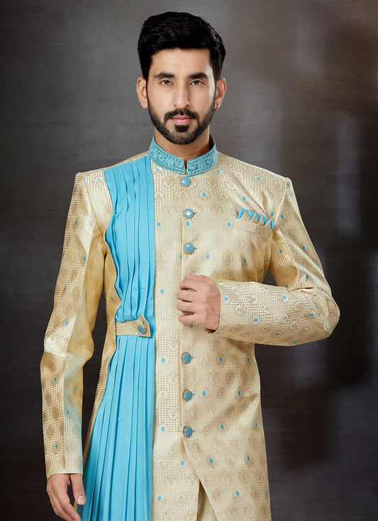 Indo Western Sherwani Banarasi Jacquard Dupion