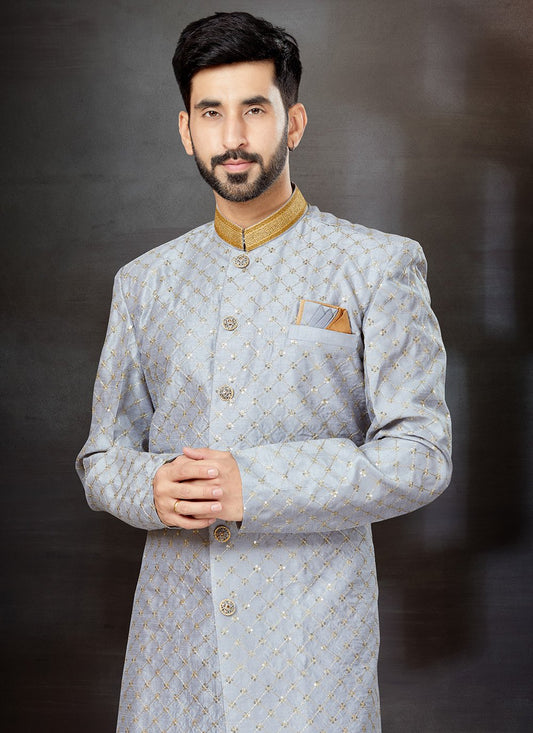 Indo Western Sherwani Banarasi Jacquard Dupion