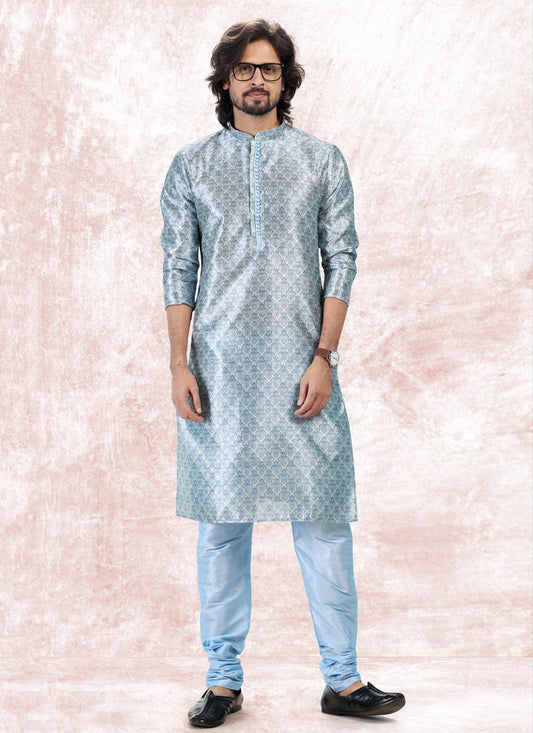 Kurta Pyjama Banarasi Jacquard Aqua Blue