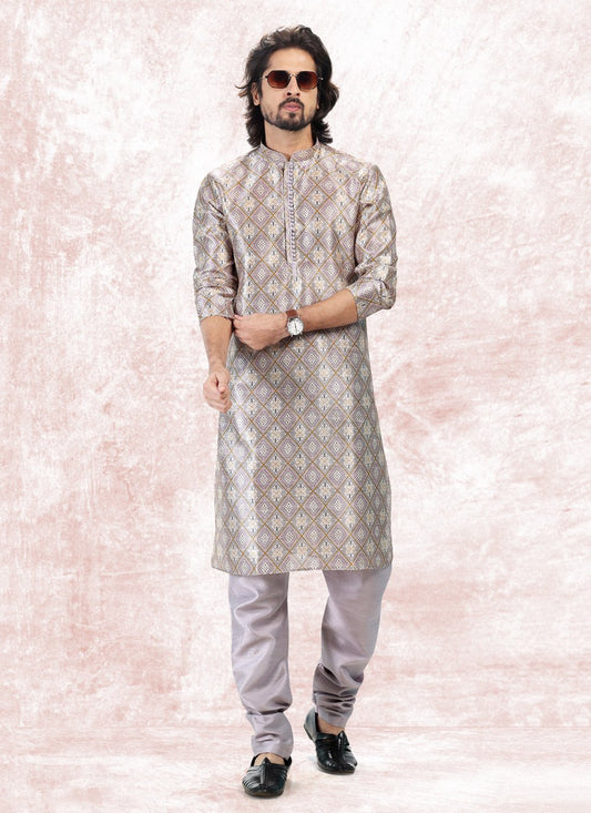 Kurta Pyjama Banarasi Jacquard Cream Purple