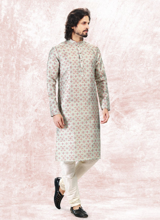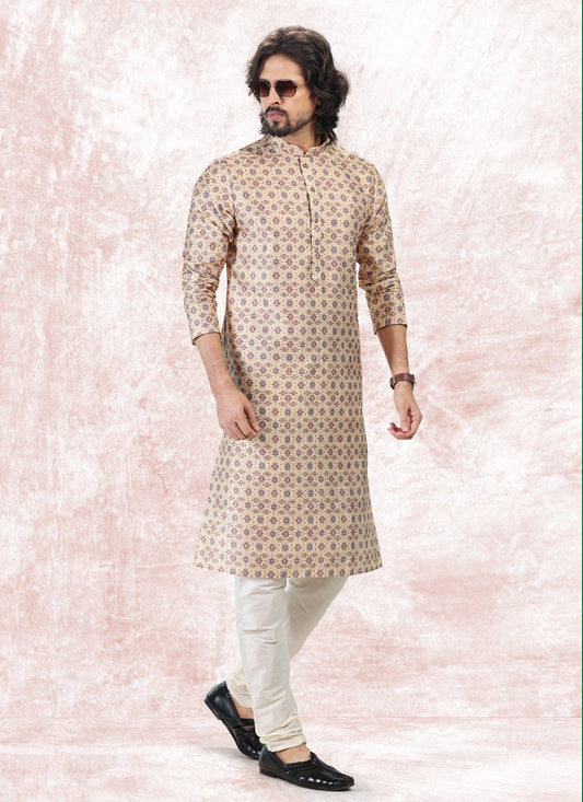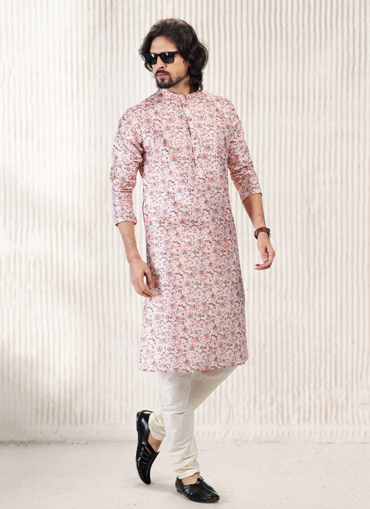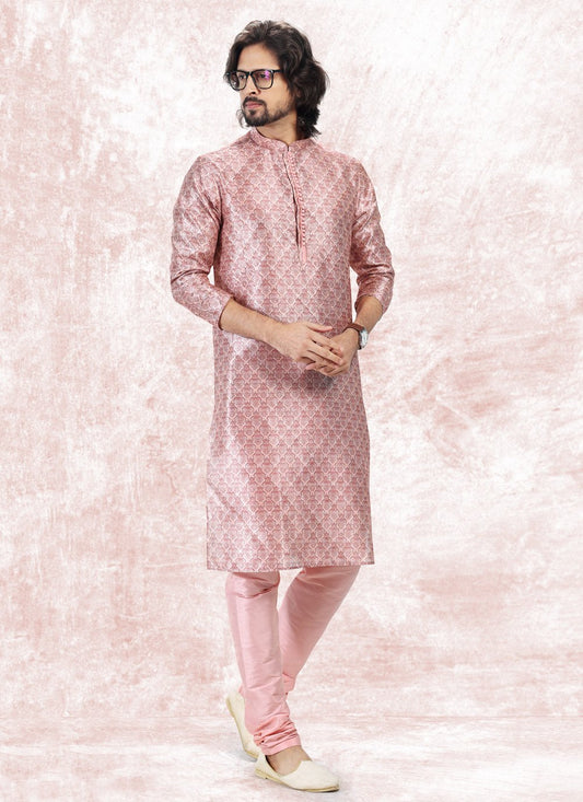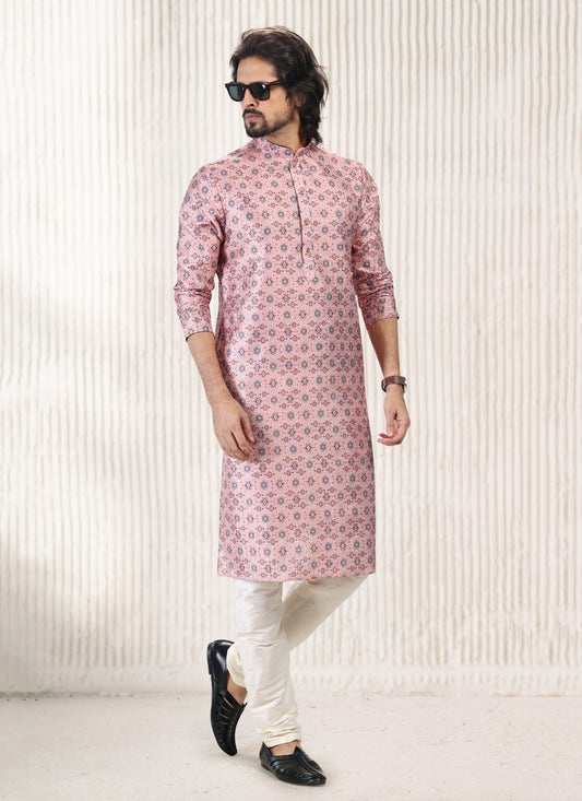 Kurta Pyjama Silk Pink Print Mens