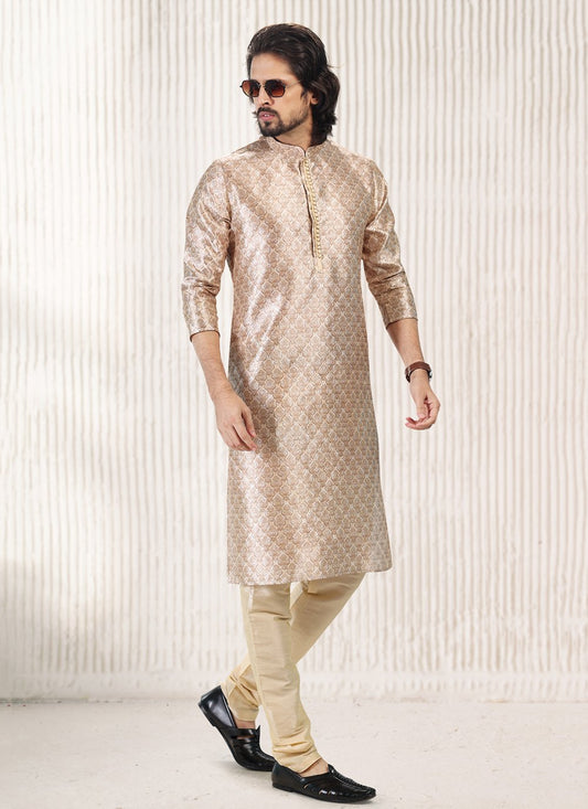 Kurta Pyjama Banarasi Jacquard Cream Peach