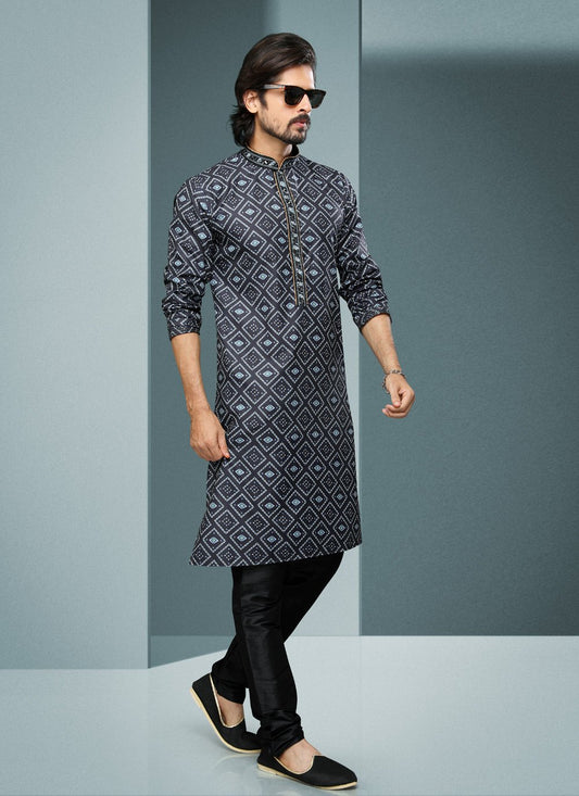 Kurta Pyjama Dupion Silk Firozi Embroidered