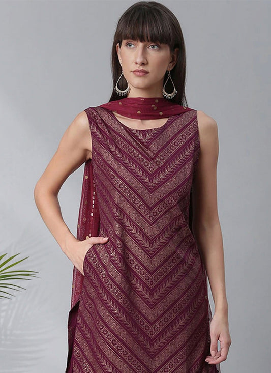 Palazzo Salwar Suit Poly Silk Wine