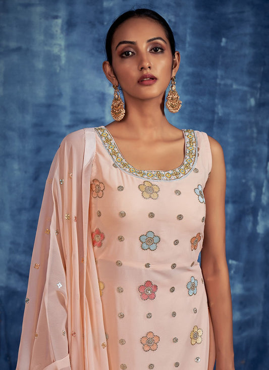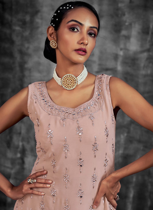 Palazzo Salwar Suit Georgette Peach Mirror