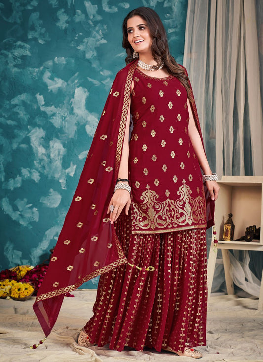 Palazzo Salwar Suit Georgette Maroon Sequins