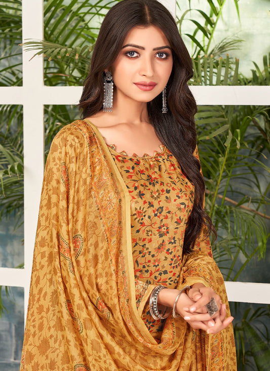 Palazzo Salwar Suit Cotton Mustard Mirror