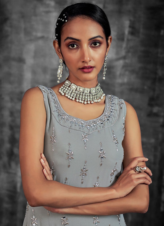 Palazzo Salwar Suit Georgette Grey Mirror