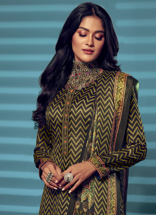 Palazzo Salwar Suit Pashmina Brown Digital