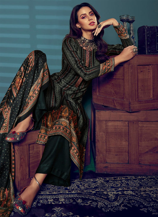 Palazzo Salwar Suit Pashmina Black Digital