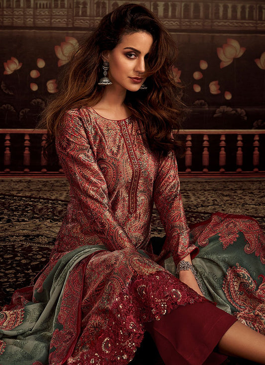 Palazzo Salwar Suit Velvet Red Digital