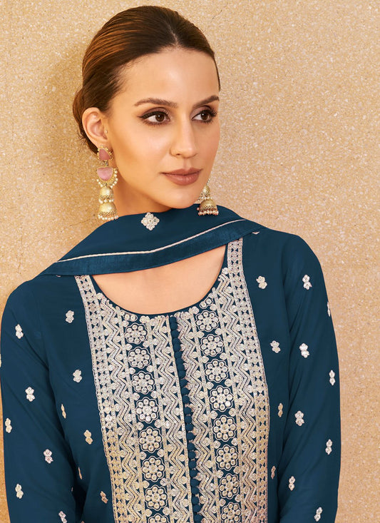 Palazzo Salwar Suit Georgette Teal Embroidered