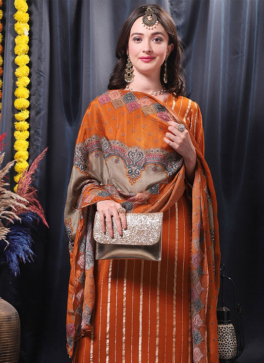 Palazzo Salwar Suit Chinon Mauve Embroidered