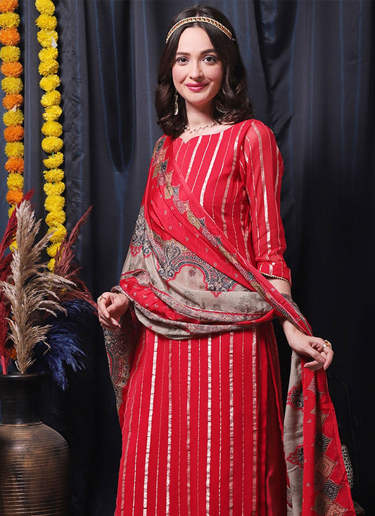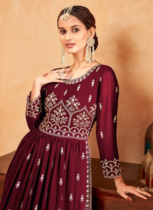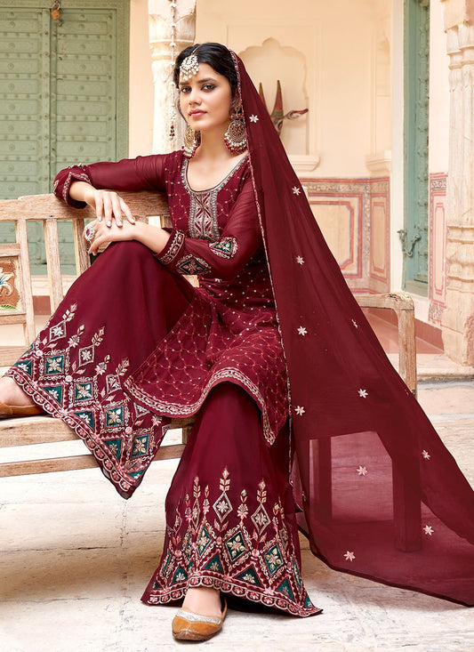 Palazzo Salwar Suit Georgette Wine Embroidered
