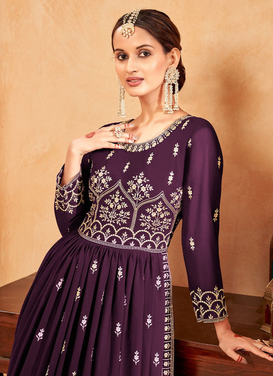Palazzo Salwar Suit Georgette Purple Embroidered