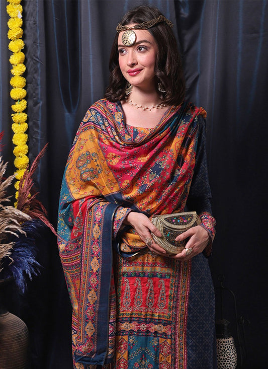 Palazzo Salwar Suit Georgette Blue Embroidered