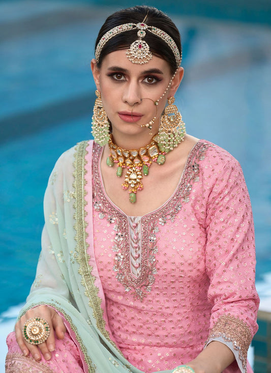 Palazzo Salwar Suit Georgette Silk Fuchsia