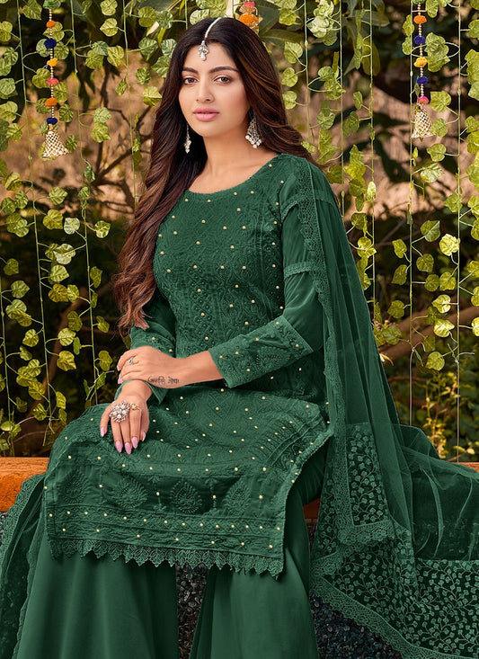 Palazzo Salwar Suit Georgette Teal Embroidered