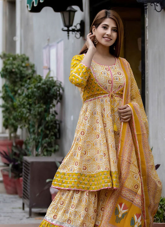 Palazzo Salwar Suit Pashmina Mustard Embroidered