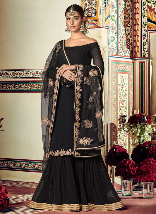 Palazzo Salwar Suit Georgette Black Embroidered