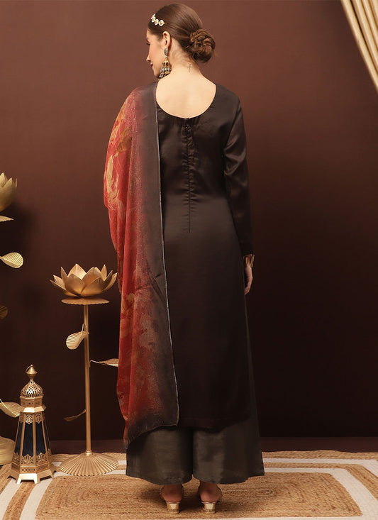 Palazzo Salwar Suit Silk Brown Embroidered