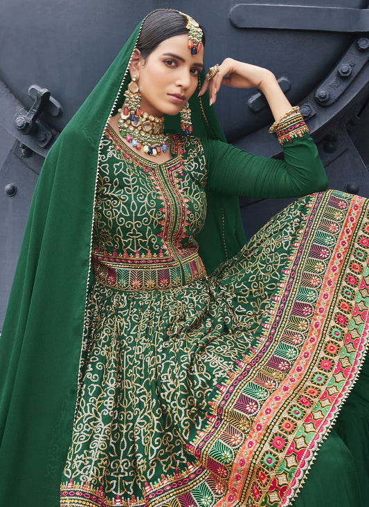 Palazzo Salwar Suit Faux Georgette Green