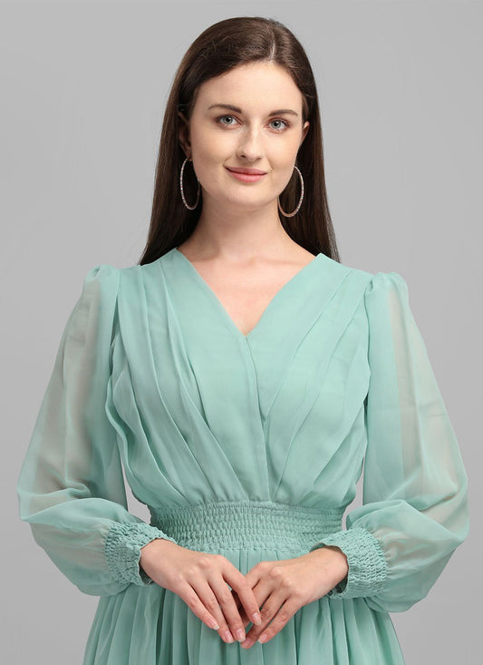 Gown Georgette Aqua Blue Plain Gown