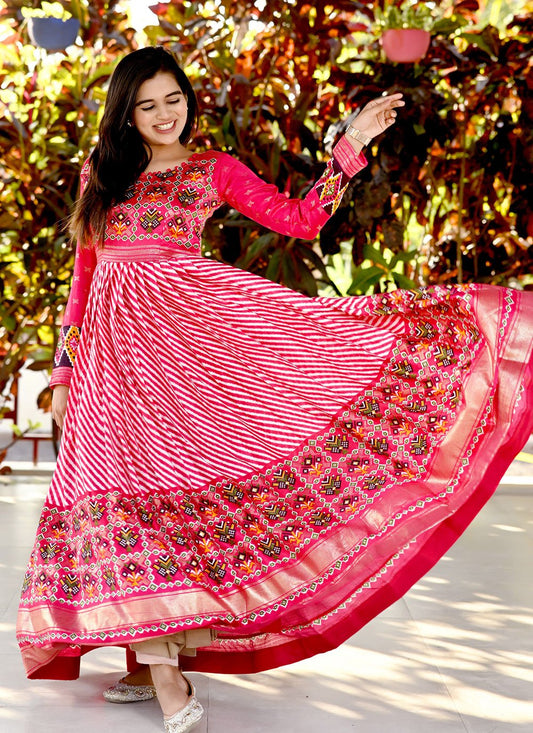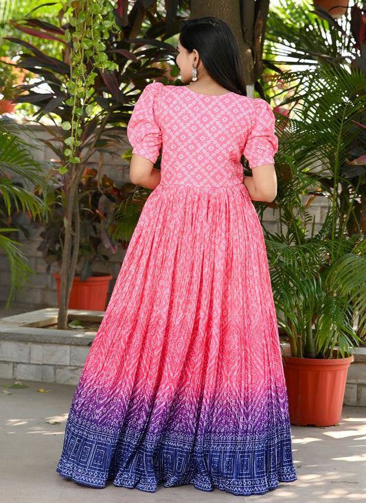 Designer Gown Muslin Pink Bandhej Gown