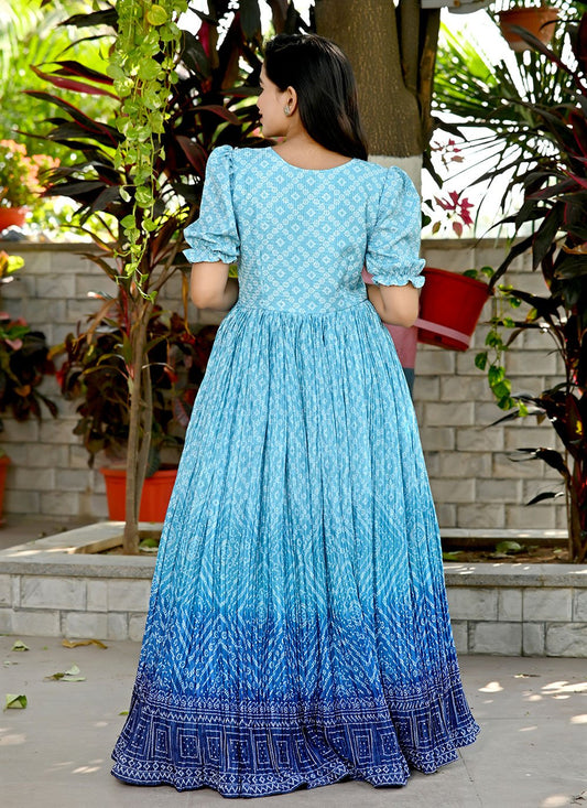 Designer Gown Georgette Blue Digital Print