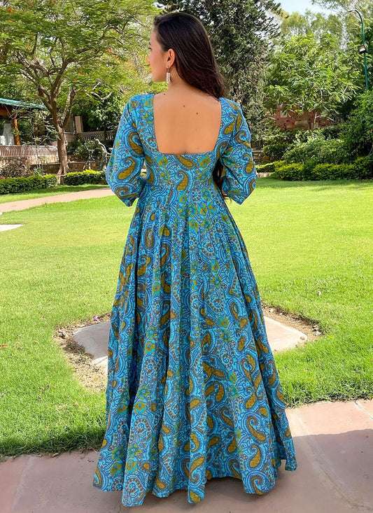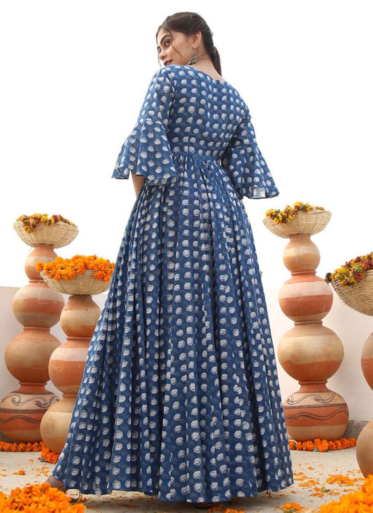 Designer Gown Cotton Blue Digital Print