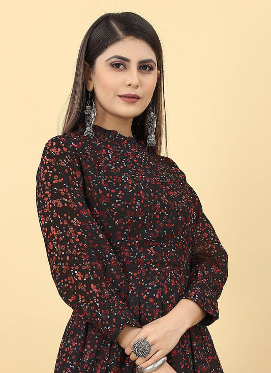 Gown Georgette Black Digital Print Gown