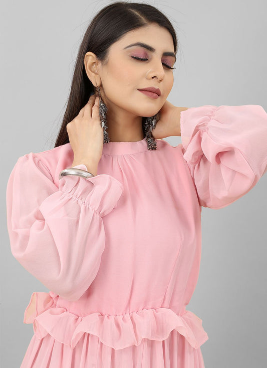 Gown Georgette Pink Plain Gown