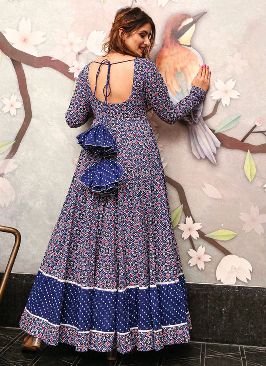 Gown Muslin Blue Bandhej Gown