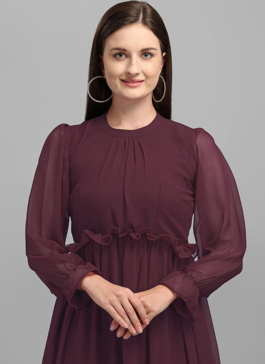 Designer Gown Georgette Burgundy Plain Gown