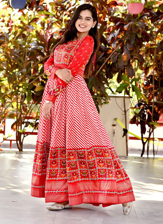 Designer Gown Pashnima Silk Red Foil