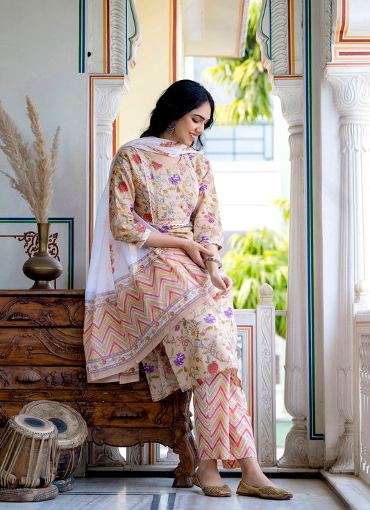 Designer Kurti Crepe Silk Cream Print