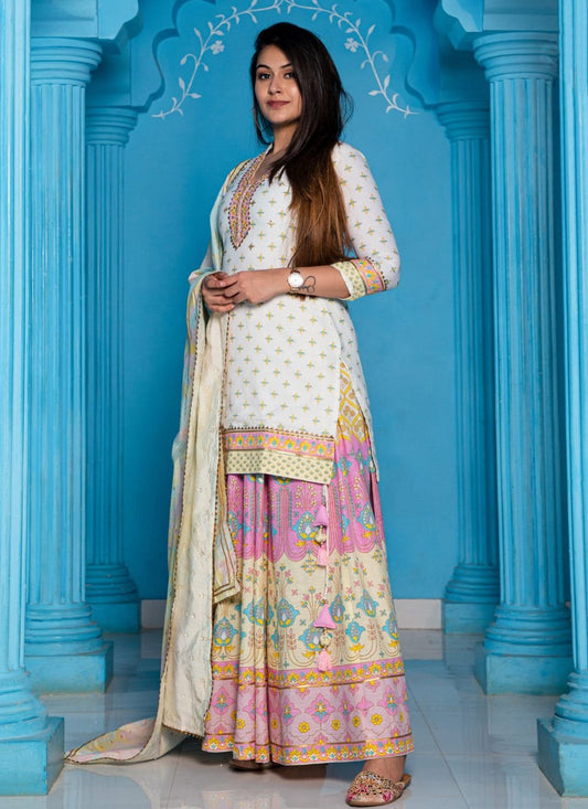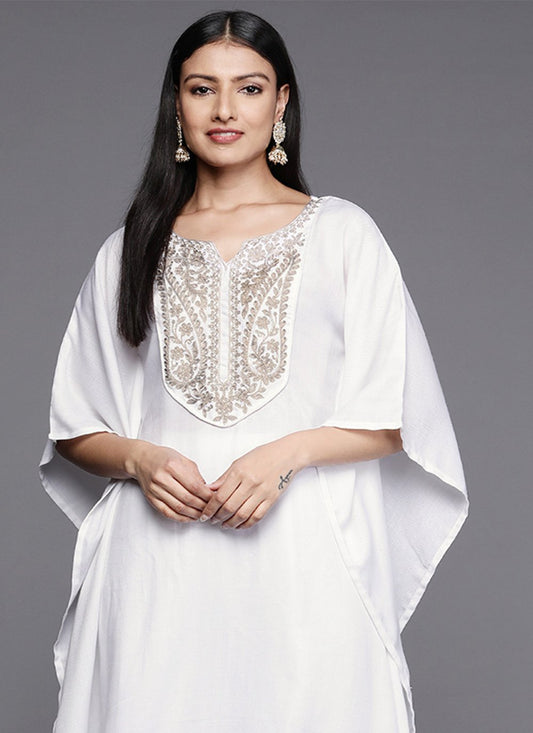 Designer Kurti Pashnima Silk White Embroidered