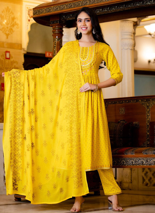 Designer Kurti Rayon Yellow Embroidered Kurtis