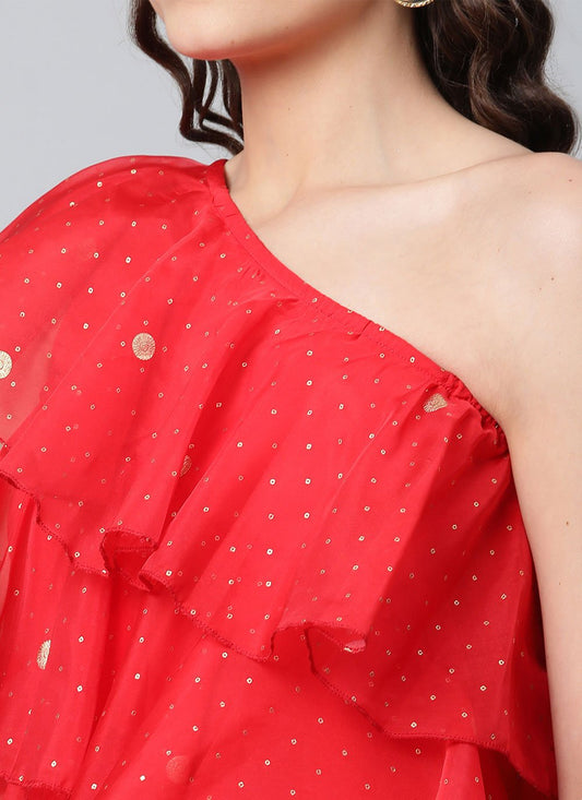 Designer Kurti Crepe Silk Red Print