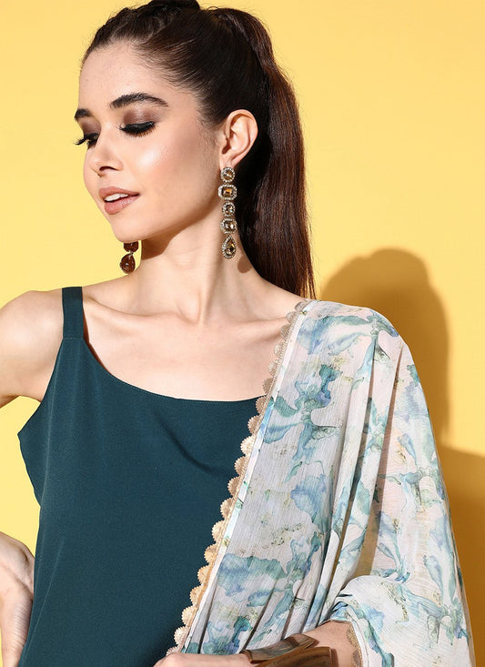 Designer Kurti Crepe Silk Teal Plain