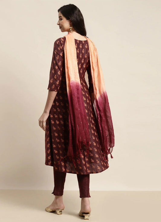 Salwar Suit Rayon Maroon Embroidered Salwar