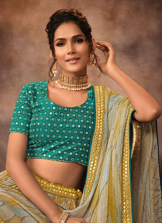 Lehenga Choli Chinon Turquoise Embroidered Lehenga