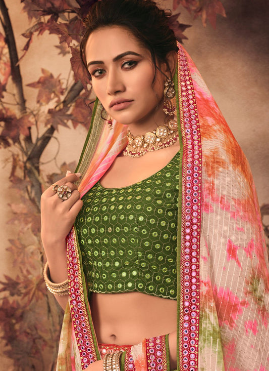 Lehenga Choli Chinon Green Embroidered Lehenga