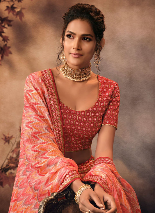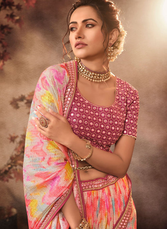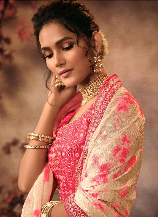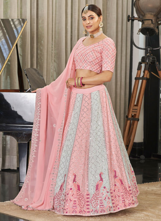 Lehenga Choli Georgette Pink Embroidered Lehenga