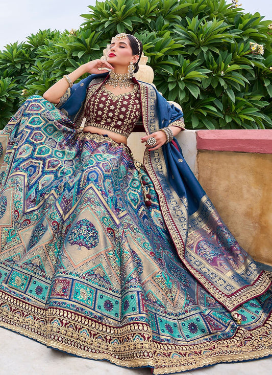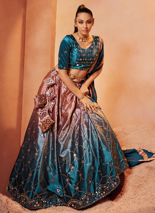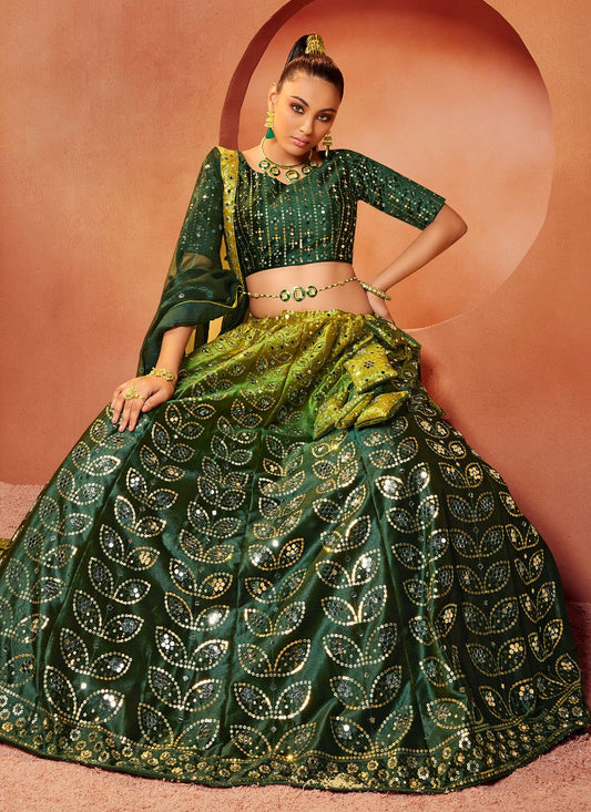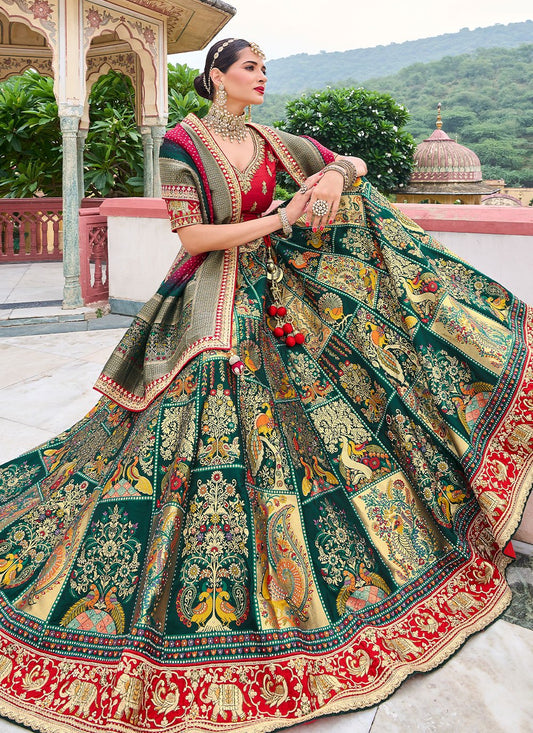 Lehenga Choli Velvet Green Embroidered Lehenga