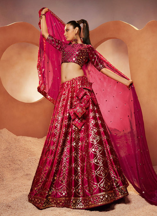 Lehenga Choli Velvet Magenta Embroidered Lehenga