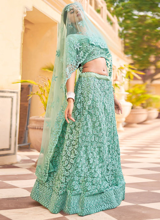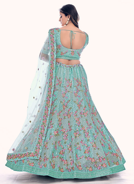Lehenga Choli Net Turquoise Embroidered Lehenga