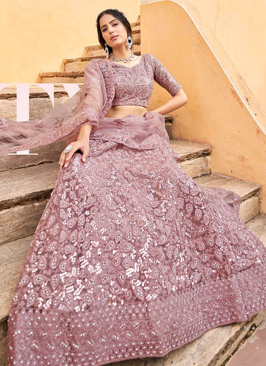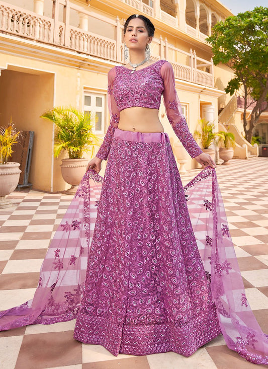 Lehenga Choli Net Lavender Embroidered Lehenga
