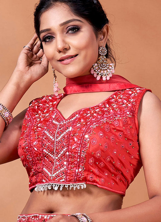 Lehenga Choli Georgette Viscose Pink Embroidered
